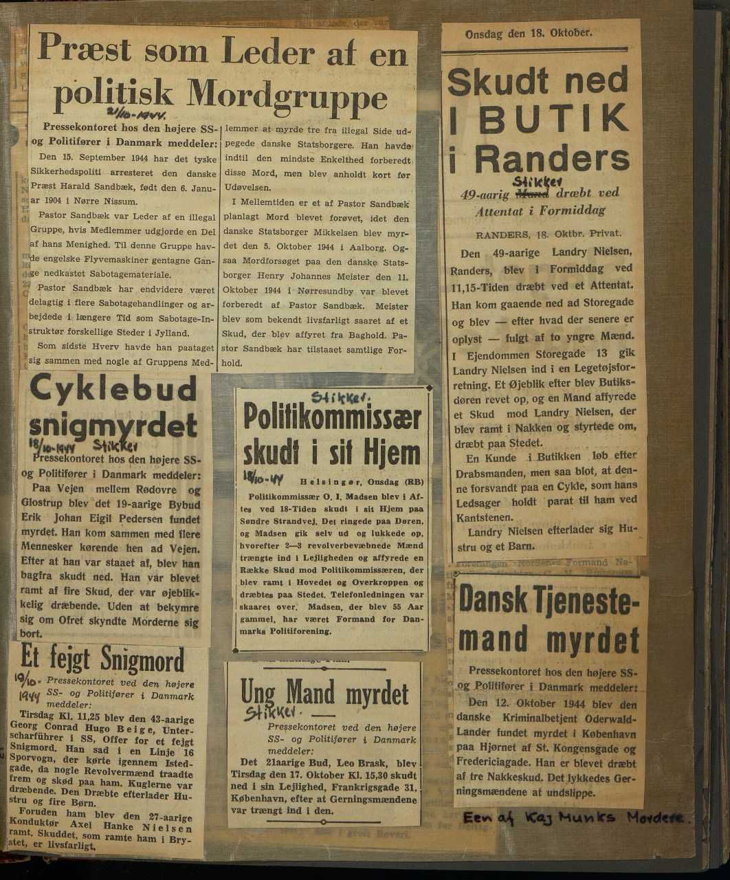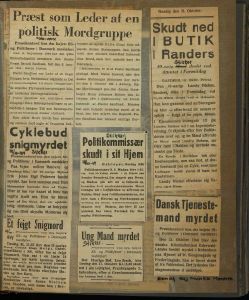 Enkeltside fra kombineret fotoalbum og scrapbog, især vedr. sabotager og Schalburgtager i Aalborg og i mindre grad Odense. Enkelte fotos fra Folkestrejken i KBH,