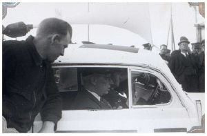Enkeltfoto fra fotoalbum med fotos fra hjemtransporten af kz-fanger med de hvide busser, samt karantænelejren i Padborg. Dertil fotos fra Storebæltsfærgen og fra Frihavnen i Kbh. Mange fotos af Grev Bernadotte.