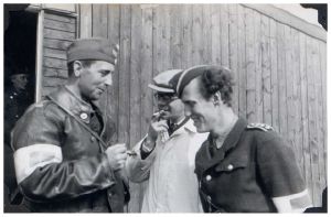 Enkeltfoto fra fotoalbum med fotos fra hjemtransporten af kz-fanger med de hvide busser, samt karantænelejren i Padborg. Dertil fotos fra Storebæltsfærgen og fra Frihavnen i Kbh. Mange fotos af Grev Bernadotte.