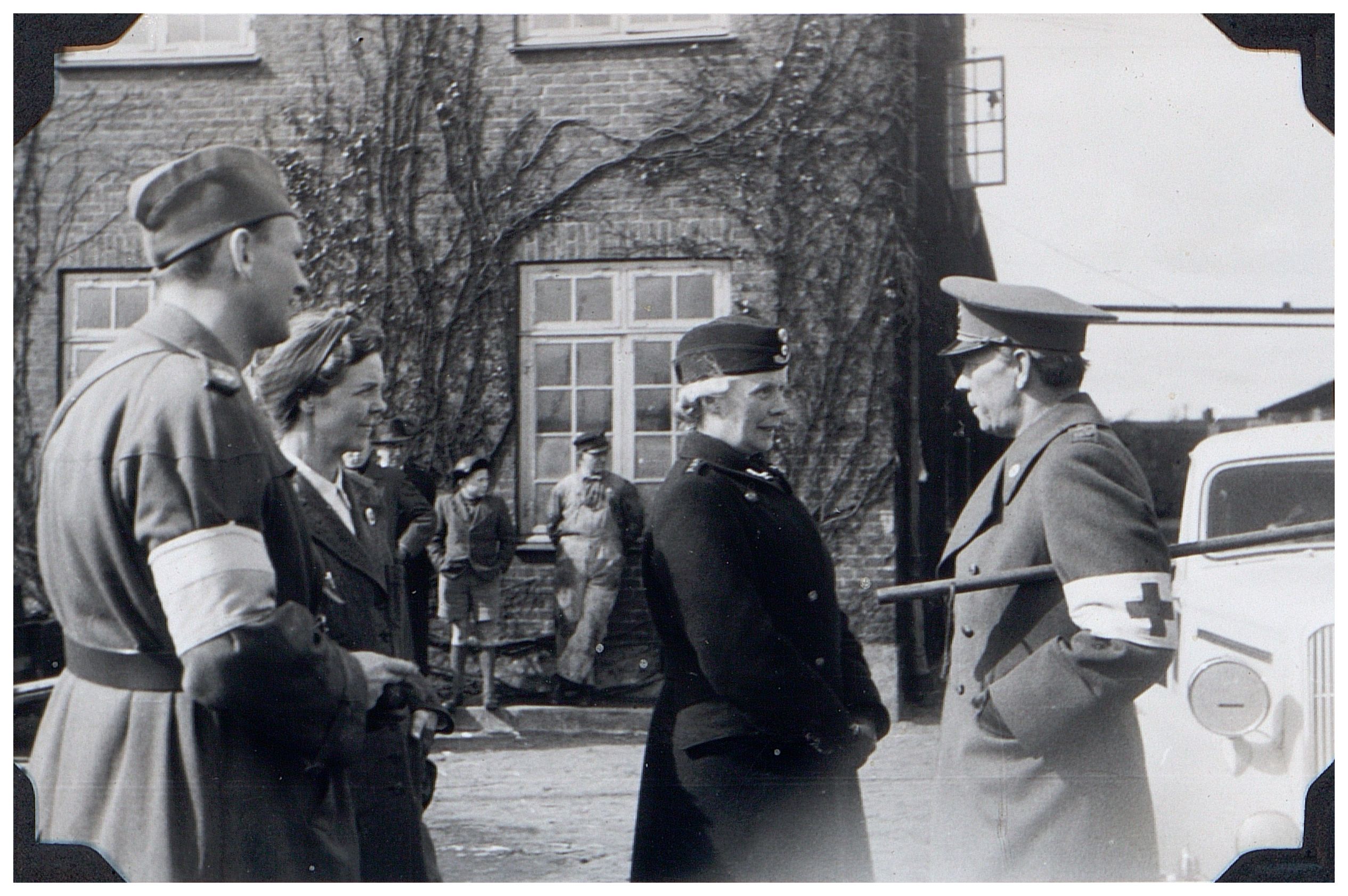 Enkeltfoto fra fotoalbum med fotos fra hjemtransporten af kz-fanger med de hvide busser, samt karantænelejren i Padborg. Dertil fotos fra Storebæltsfærgen og fra Frihavnen i Kbh. Mange fotos af Grev Bernadotte.