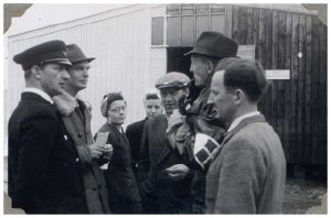 Enkeltfoto fra fotoalbum med fotos fra hjemtransporten af kz-fanger med de hvide busser, samt karantænelejren i Padborg. Dertil fotos fra Storebæltsfærgen og fra Frihavnen i Kbh. Mange fotos af Grev Bernadotte.