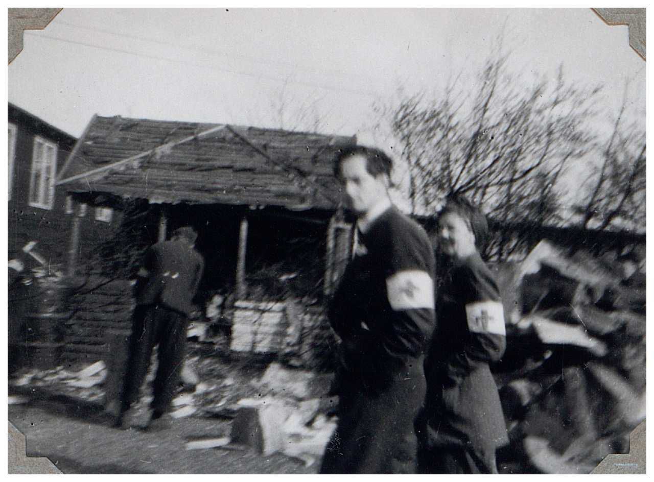 Enkeltfoto fra fotoalbum med fotos fra hjemtransporten af kz-fanger med de hvide busser, samt karantænelejren i Padborg. Dertil fotos fra Storebæltsfærgen og fra Frihavnen i Kbh. Mange fotos af Grev Bernadotte.