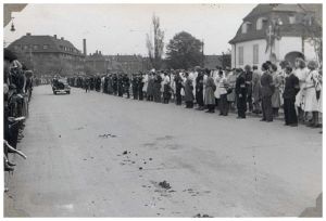 Enkeltfoto fra fotoalbum med fotos fra hjemtransporten af kz-fanger med de hvide busser, samt karantænelejren i Padborg. Dertil fotos fra Storebæltsfærgen og fra Frihavnen i Kbh. Mange fotos af Grev Bernadotte.