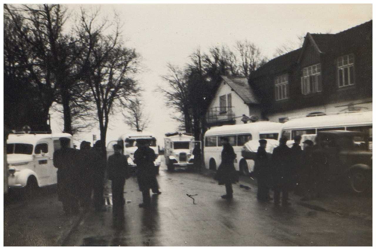 Enkeltfoto fra fotoalbum. De fleste fotos viser hjemtransporten med De hvide busser m.m. Enkelte fotos dog fra Krusaa og Gråsten samt fra grænsegendarmernes tur til Neuengamme i 1945 efter krigen.