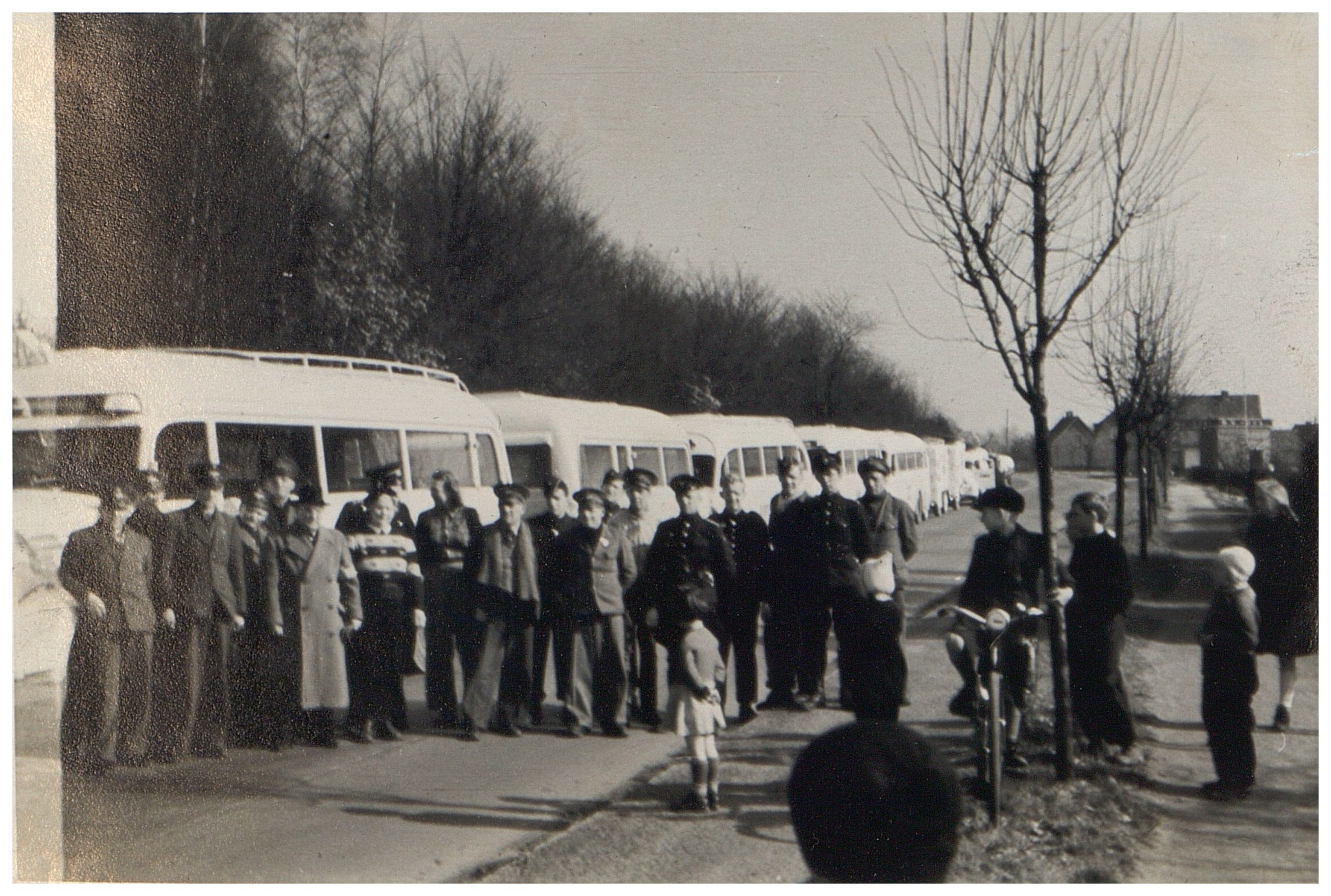 Enkeltfoto fra fotoalbum. De fleste fotos viser hjemtransporten med De hvide busser m.m. Enkelte fotos dog fra Krusaa og Gråsten samt fra grænsegendarmernes tur til Neuengamme i 1945 efter krigen.