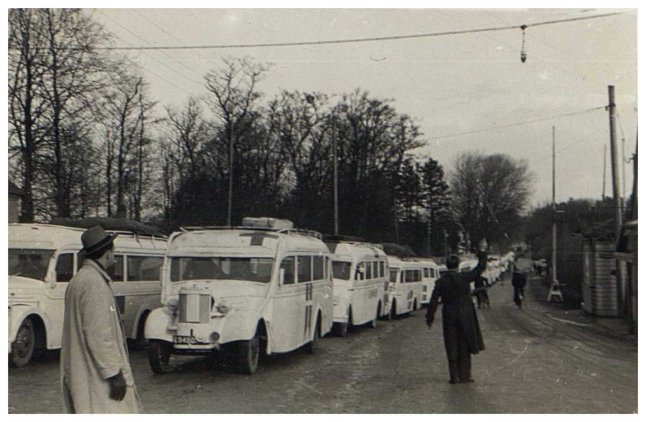 Enkeltfoto fra fotoalbum. De fleste fotos viser hjemtransporten med De hvide busser m.m. Enkelte fotos dog fra Krusaa og Gråsten samt fra grænsegendarmernes tur til Neuengamme i 1945 efter krigen.