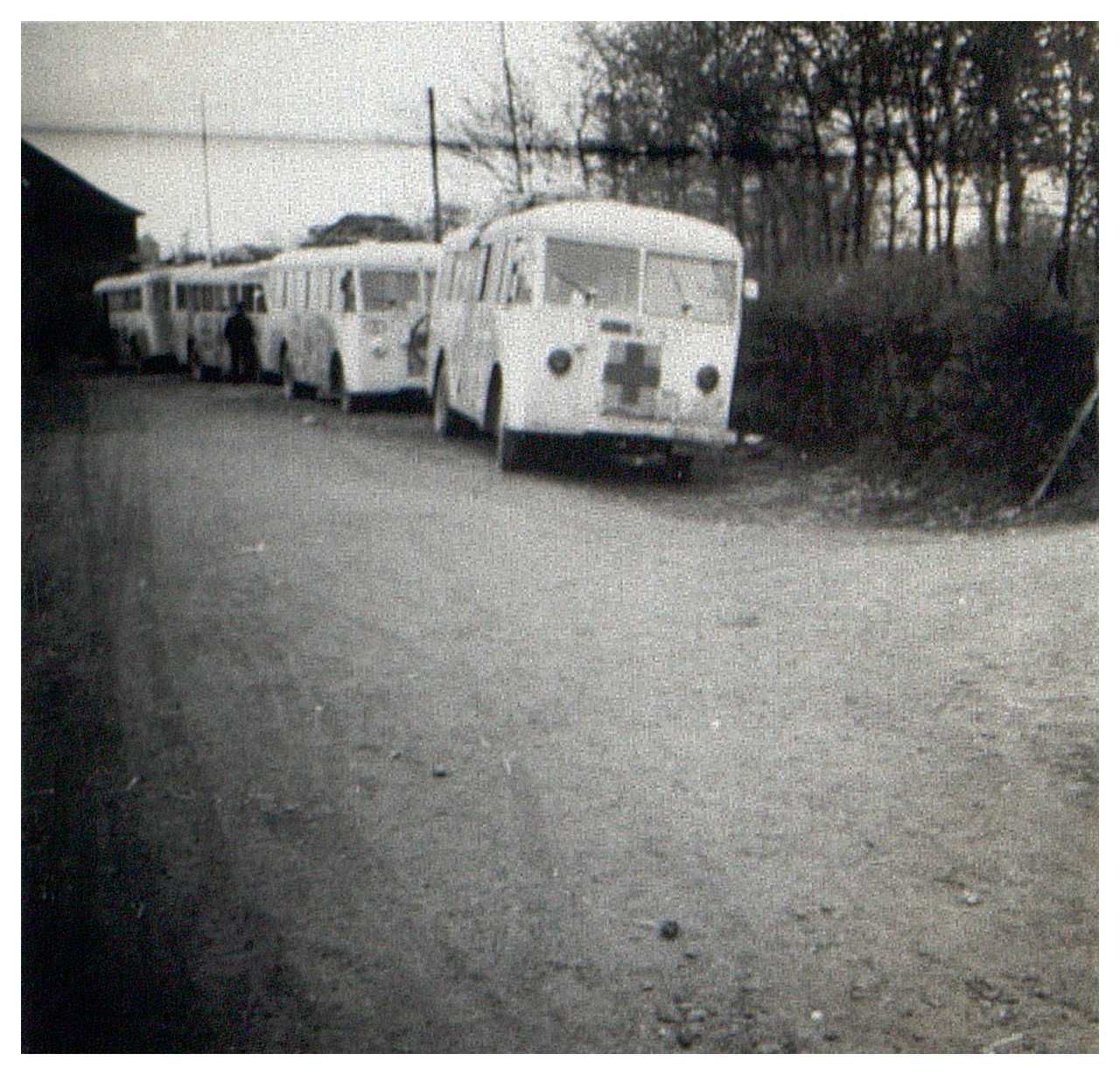 Enkeltfoto fra fotoalbum. De fleste fotos viser hjemtransporten med De hvide busser m.m. Enkelte fotos dog fra Krusaa og Gråsten samt fra grænsegendarmernes tur til Neuengamme i 1945 efter krigen.