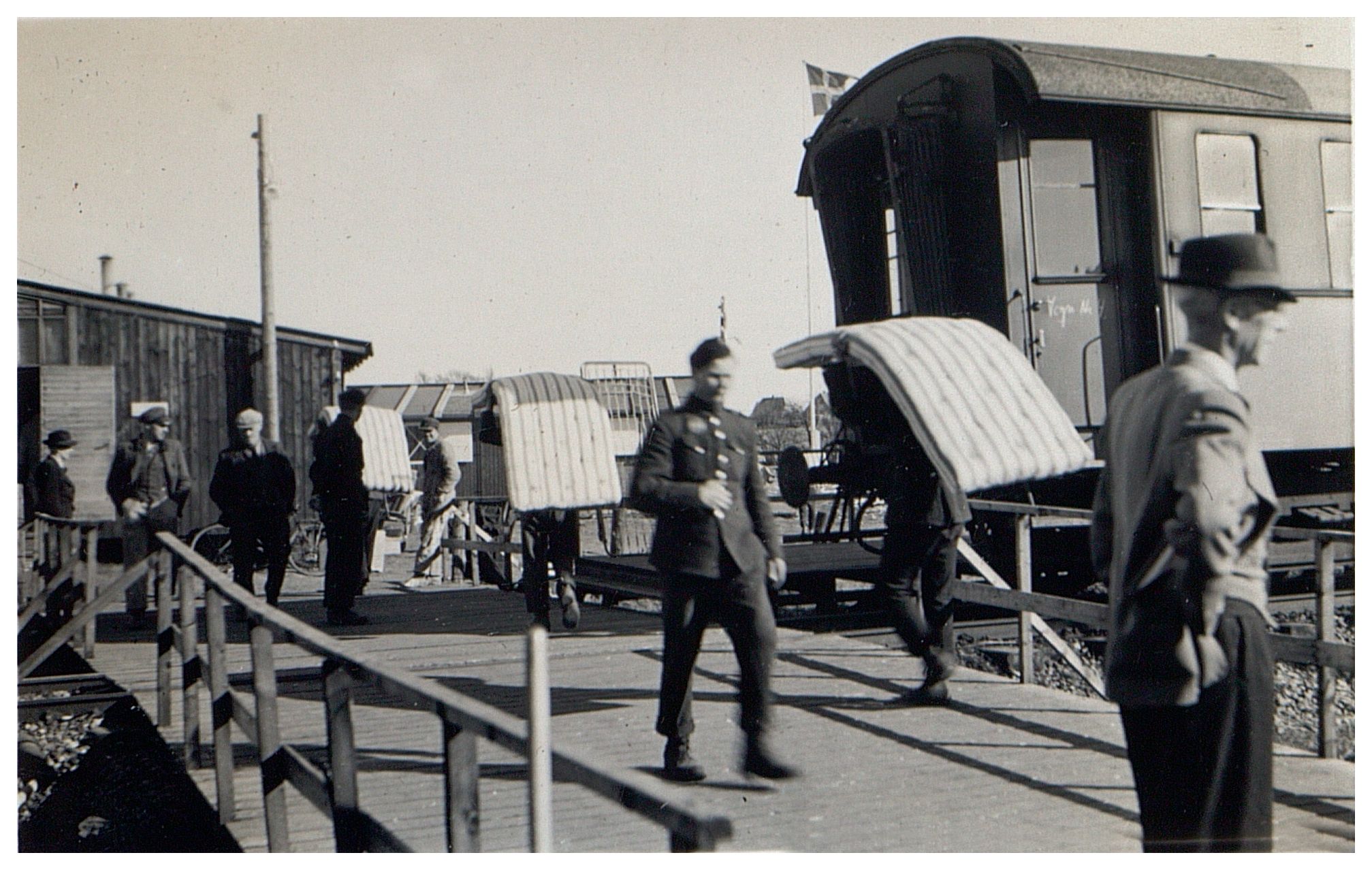Enkeltfoto fra fotoalbum. De fleste fotos viser hjemtransporten med De hvide busser m.m. Enkelte fotos dog fra Krusaa og Gråsten samt fra grænsegendarmernes tur til Neuengamme i 1945 efter krigen.
