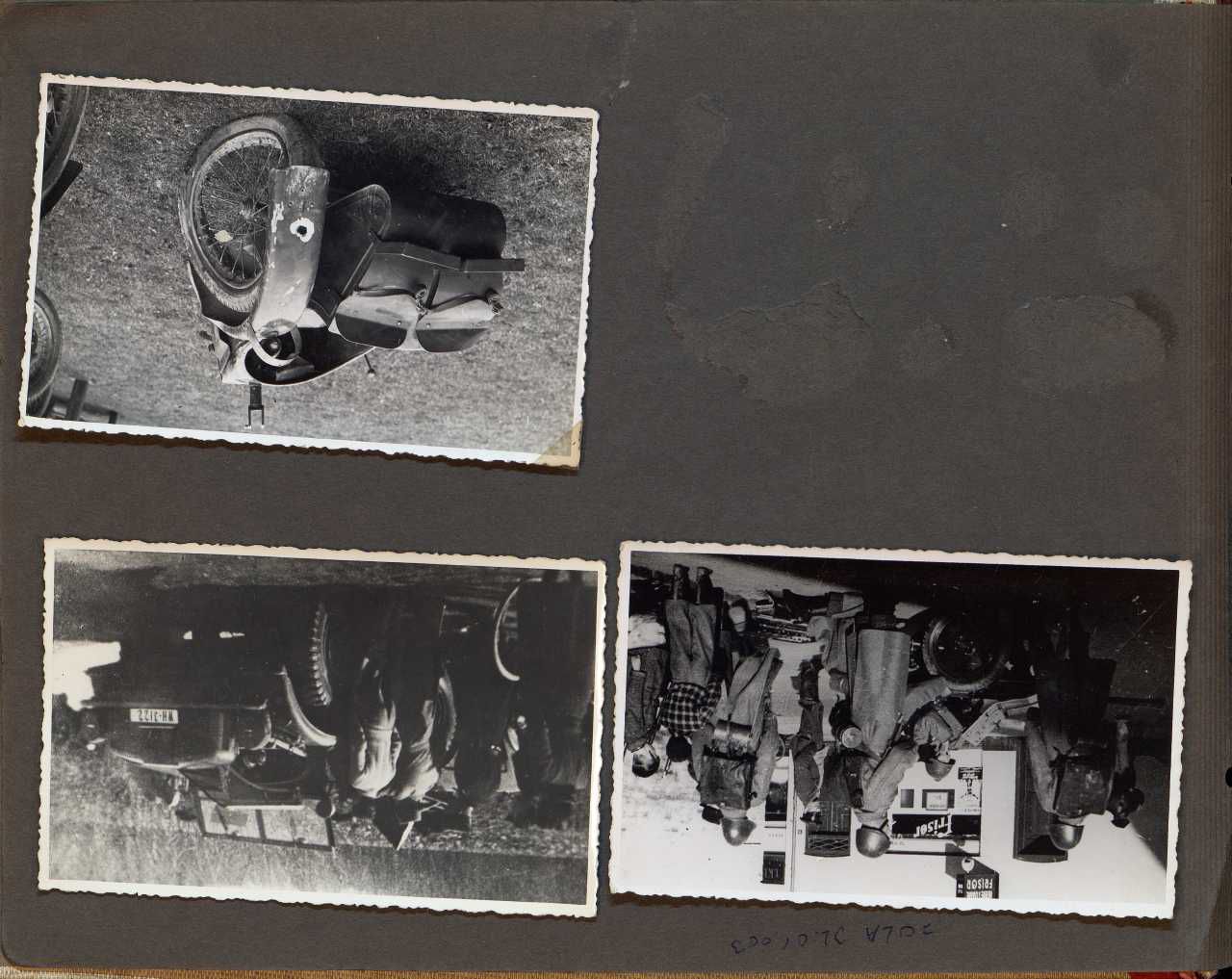 Enkeltside fra fotoalbum. De få tilbageværende fotos viser hovedsagligt allerede kendte billeder af danske soldater på besættelsesdagen