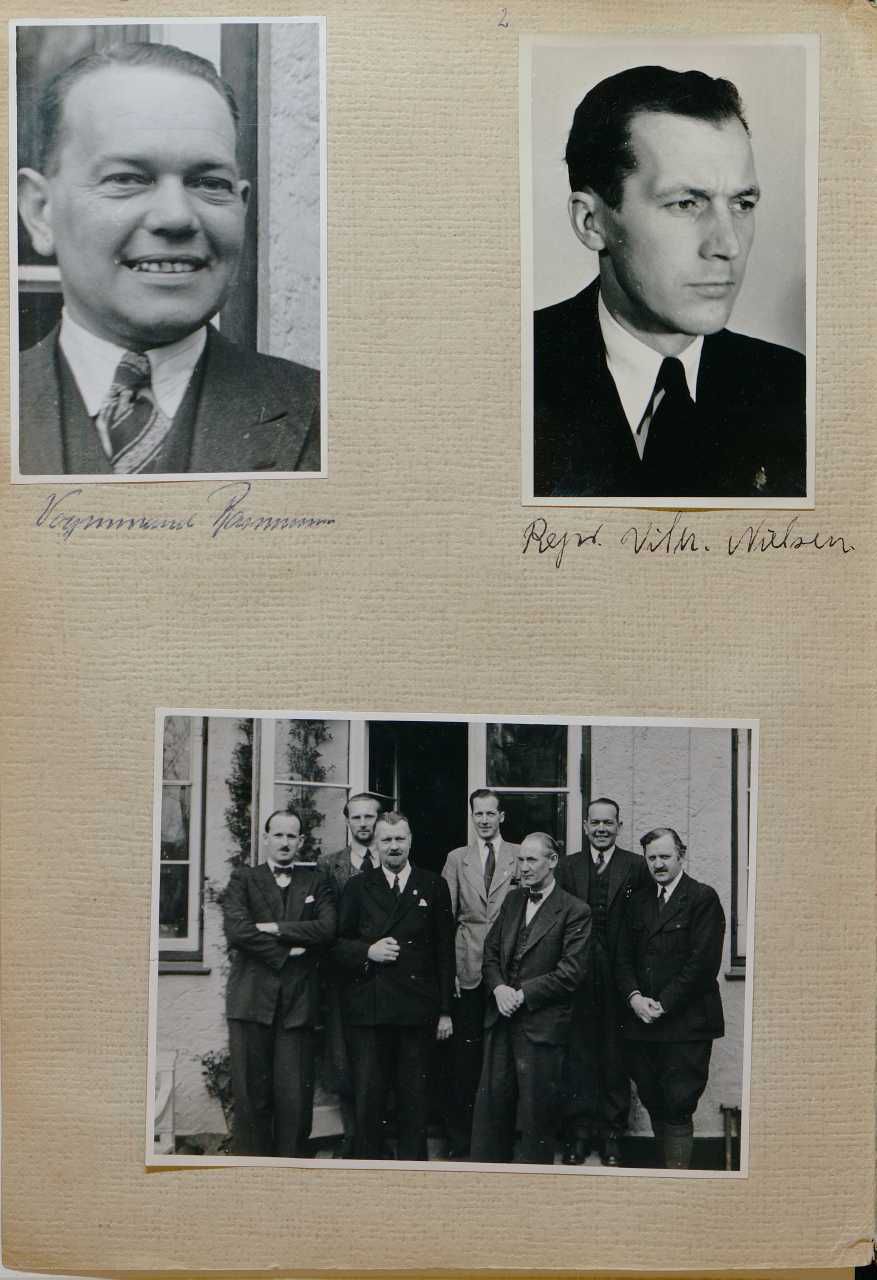 Enkeltside fra album med titlen "Minder fra tiden omkring kapitulationen". Relaterer sig hovedsagligt til politiet omkring befrielsesdagene, herunder politiets illegale ledelse. Enkelt gruppefoto af politifolk i tysk fangenskab, samt fotos af britiske styrker.