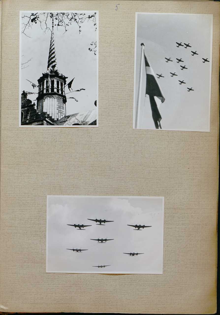 Enkeltside fra album med titlen "Minder fra tiden omkring kapitulationen". Relaterer sig hovedsagligt til politiet omkring befrielsesdagene, herunder politiets illegale ledelse. Enkelt gruppefoto af politifolk i tysk fangenskab, samt fotos af britiske styrker.