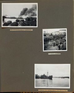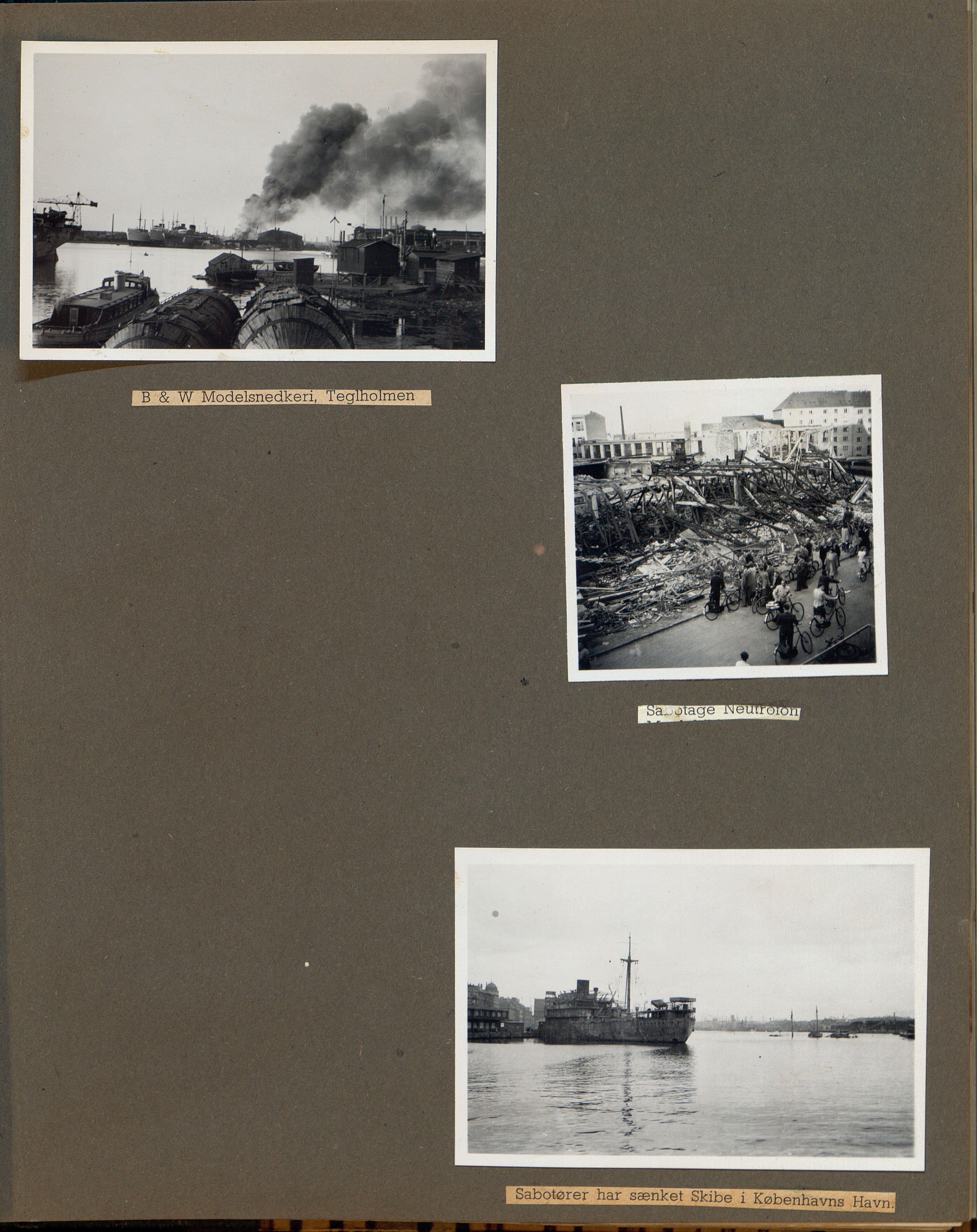 Enkeltside fra album med diverse købte serie-fotos fra besættelsen, med udklippede tekster.