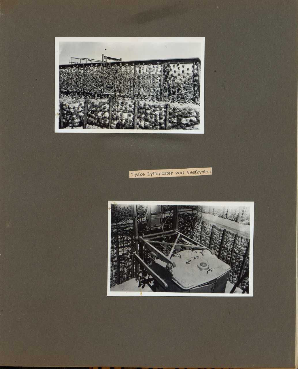 Enkeltside fra album med diverse købte serie-fotos fra besættelsen, med udklippede tekster.