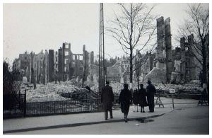 Enkeltfoto fra album med diverse købte serie-fotos fra besættelsen, med udklippede tekster.