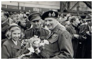 Enkeltfoto fra album med diverse købte serie-fotos fra besættelsen, med udklippede tekster.