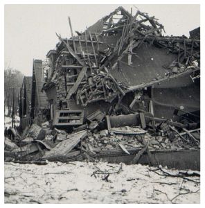 Enkeltfoto fra album med diverse købte serie-fotos fra besættelsen, med udklippede tekster.