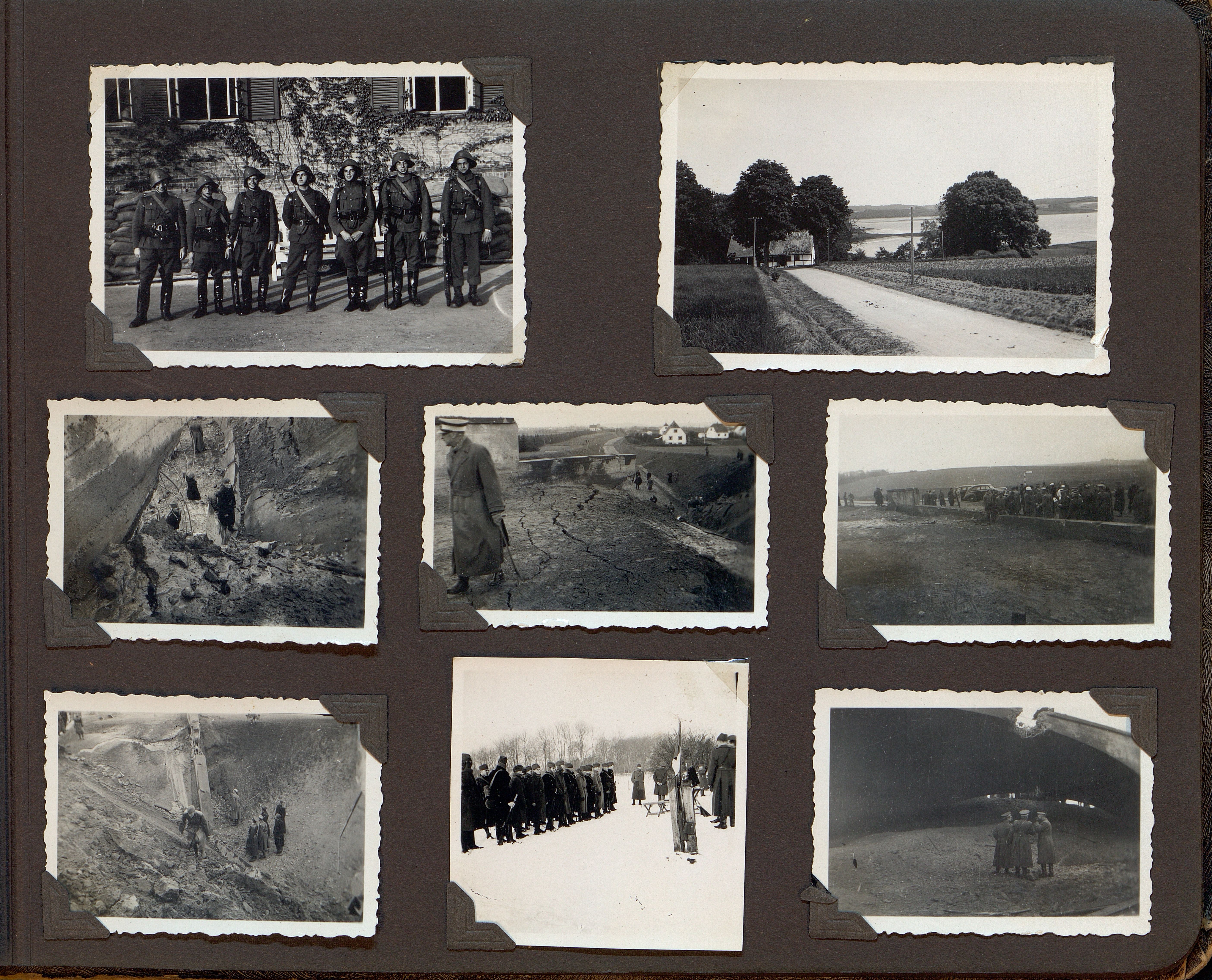 Enkeltside fra fotoalbum om bl.a. 11. Ingeniørkompagni årgang 1935. Første bind af to.