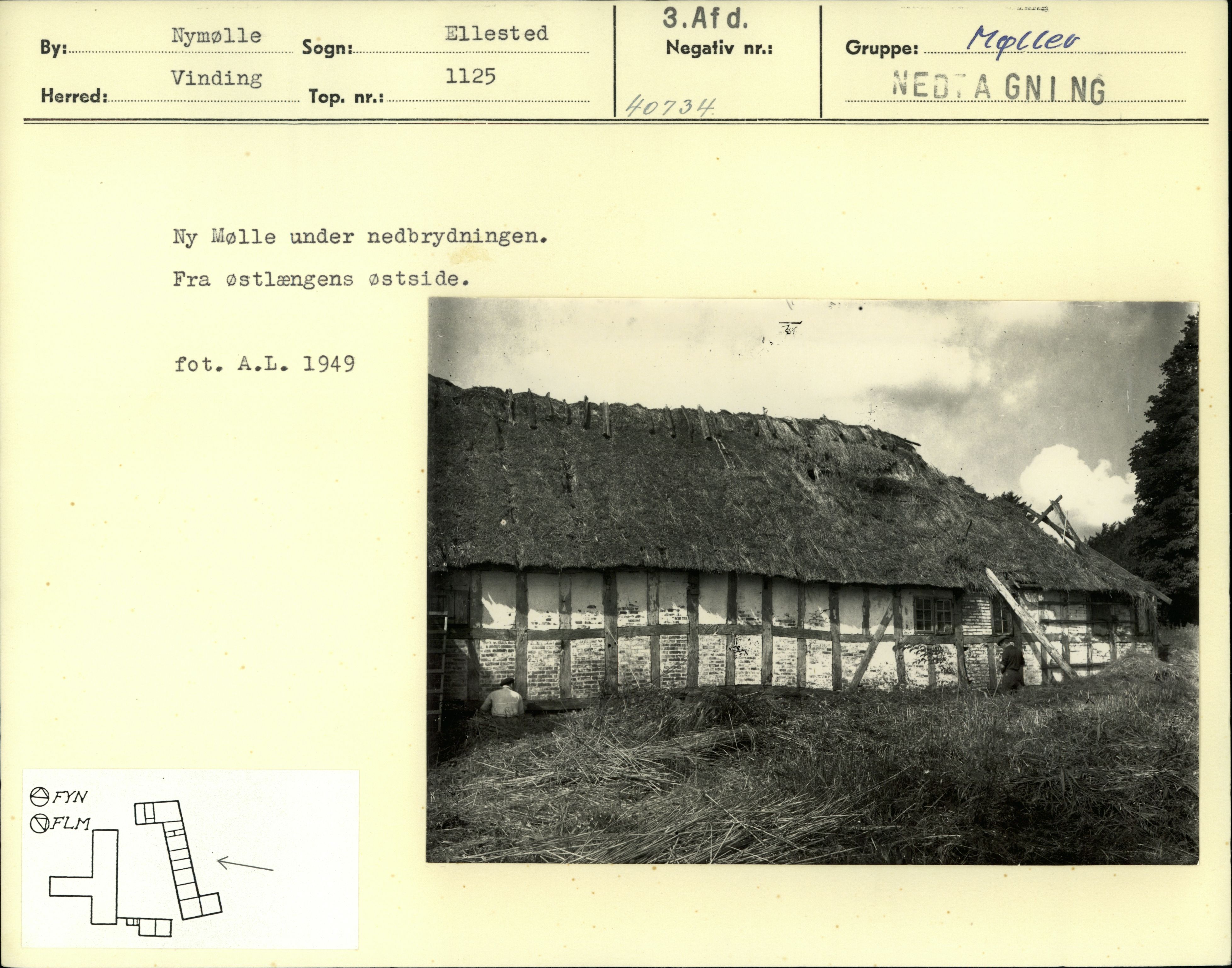 Ny Mølle under nedbrydningen. Fra østlængens østside. fot. A. L. 1949