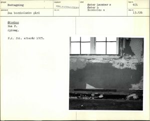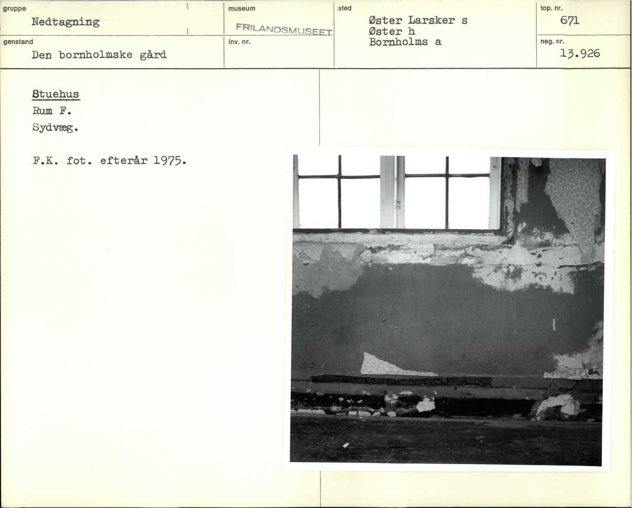 Frilandsmuseets gård fra Øster Larsker, Bornholm. Nedtagning. Stuehus Rum F. Sydvæg. F. K. fot. efterår 1975.