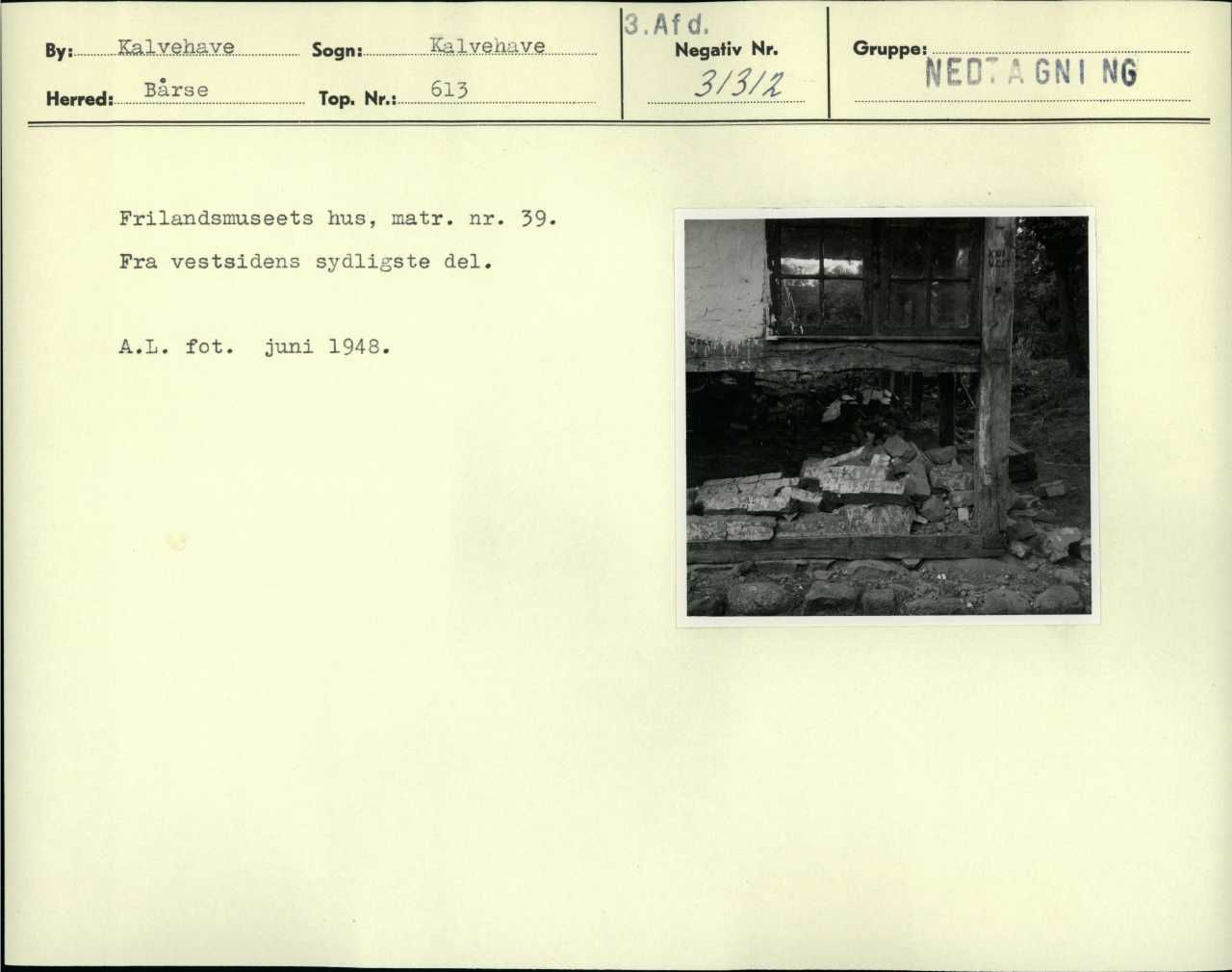 Frilandsmuseets hus, matr. nr. 39. Fra vestsidens sydligste del. A. L. fot. juni 1948.