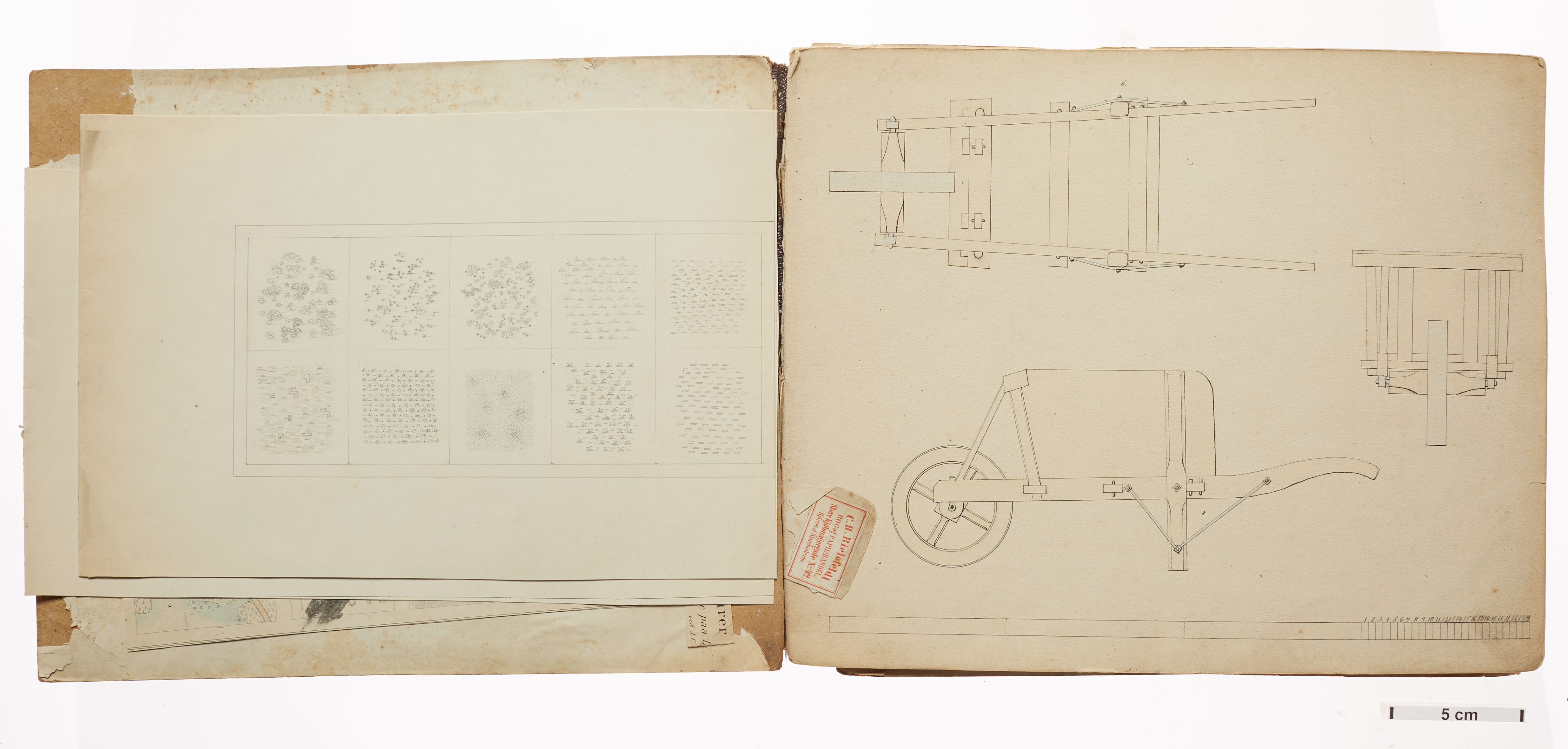 "betegnelse": "Bog med elevtegninger af forsk. landbrugsredskaber",