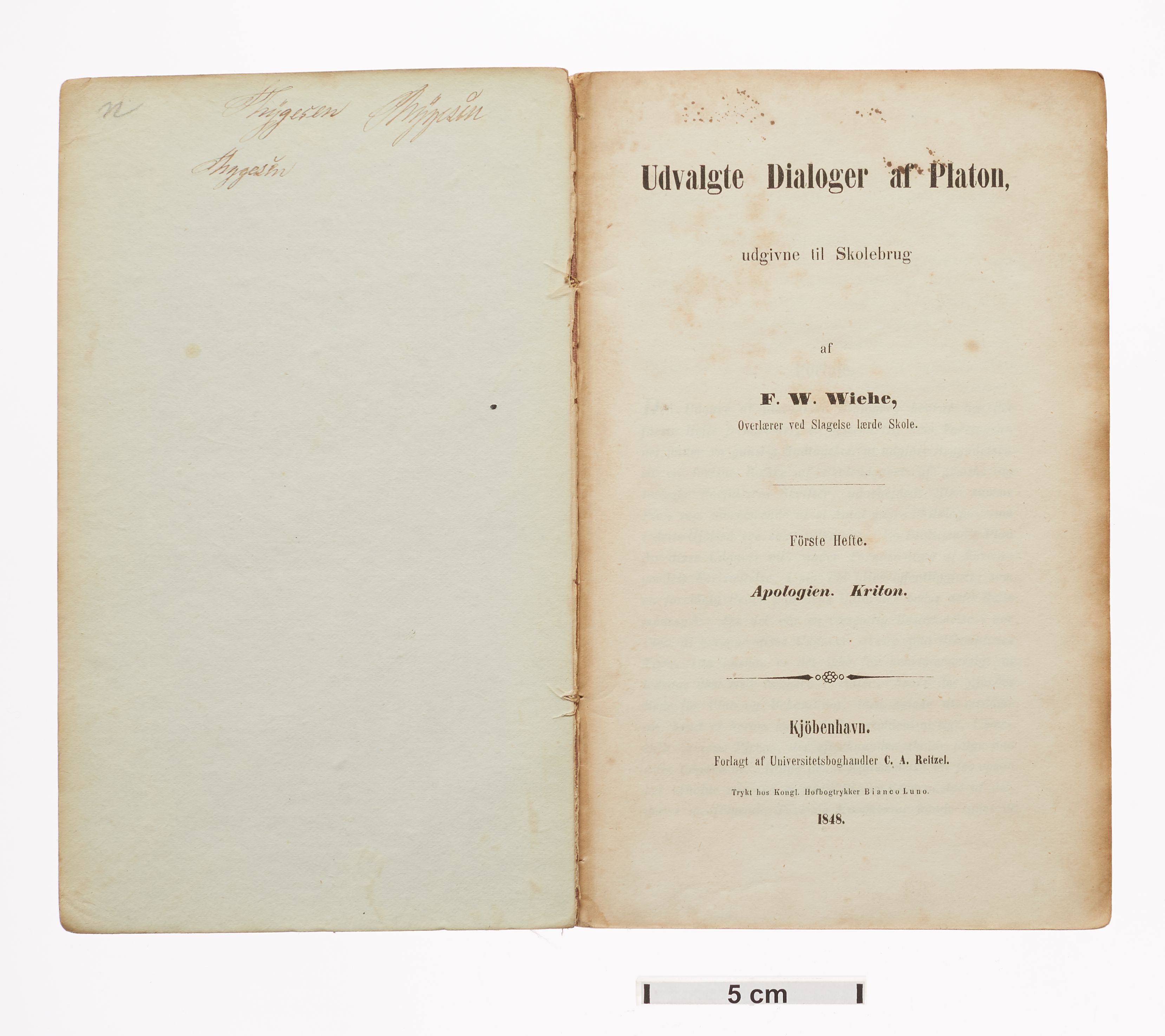 "betegnelse": "Bog (Wiehe: Udvalgte Dialoger af Platon, 1848)",