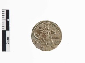 Mønt registeret i "Catalogue des Monnaies Arabes et Turques du Cabinet Royal des Médailles du Musée National de Copenhague" fra 1938 af J.Østrup