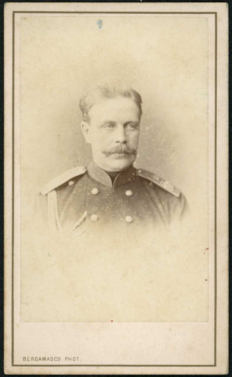 Fotografisk portræt af generalmajor Grigorij Ivanovitj Tjertkov (1828-1882) Чертков Григорий Иванович. I generalmajors uniform.