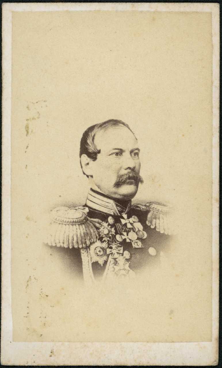 Fotografisk portræt af generaladjudant grev Eduard Ivanovitj Totleben (1818-1884) iført gallauniform for general i ingeniørkorpset.