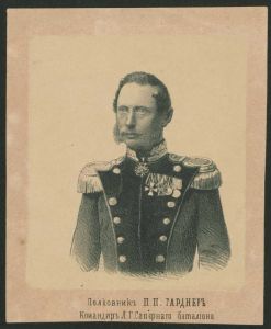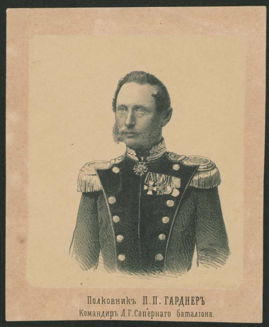 Tekst under billede: "полковник П.П. Гардер командир Леиб гвард сапернаго баталюна"