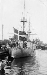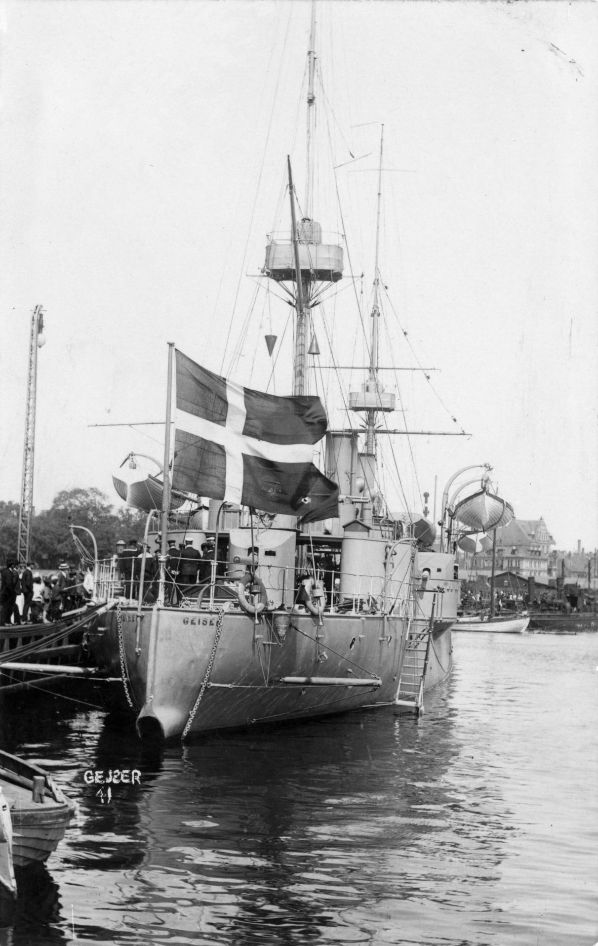 Foto: Postkort, Krydseren "Gejser", søsat 1892, set agten fra mod styrbord side.
