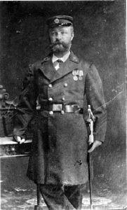 Foto: Overbådsmand Peter Chr. J. Enevoldsen (1/6 1892) f. 14/4 1843. Knæstykke. 9,6 x 5,8 cm.
