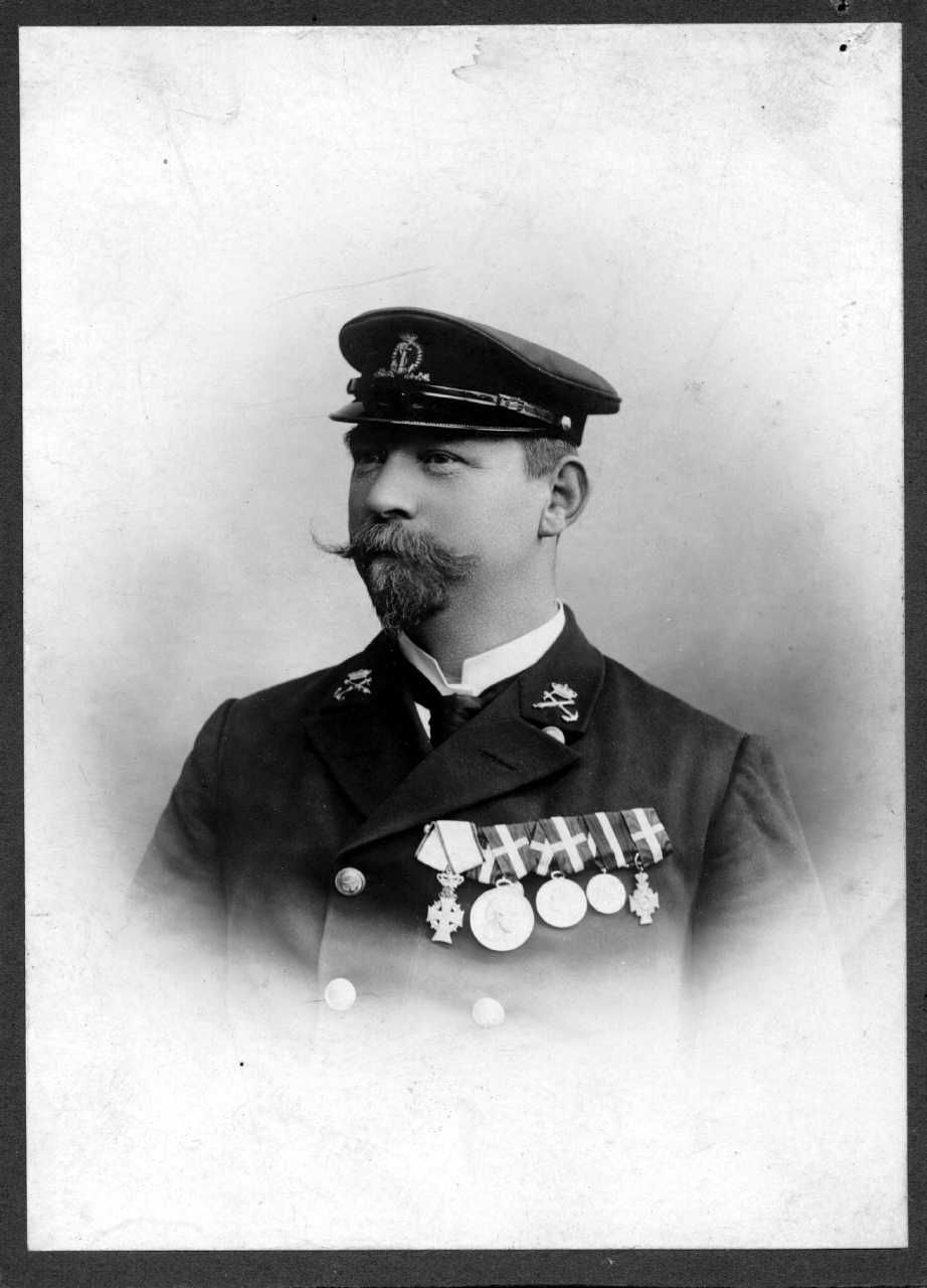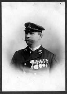 Foto: Overkanoner Carl P.V. Gross, Elevhold 1867, senere Overbådsmand. Tegn. Ved Flådens Mærkevæsen. Kabinetst.