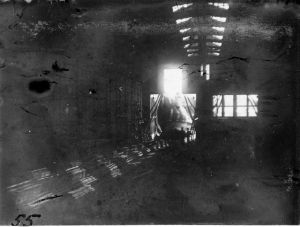 Foto: Undervandsbåd ophales i skur. 8,2 x 11 cm.