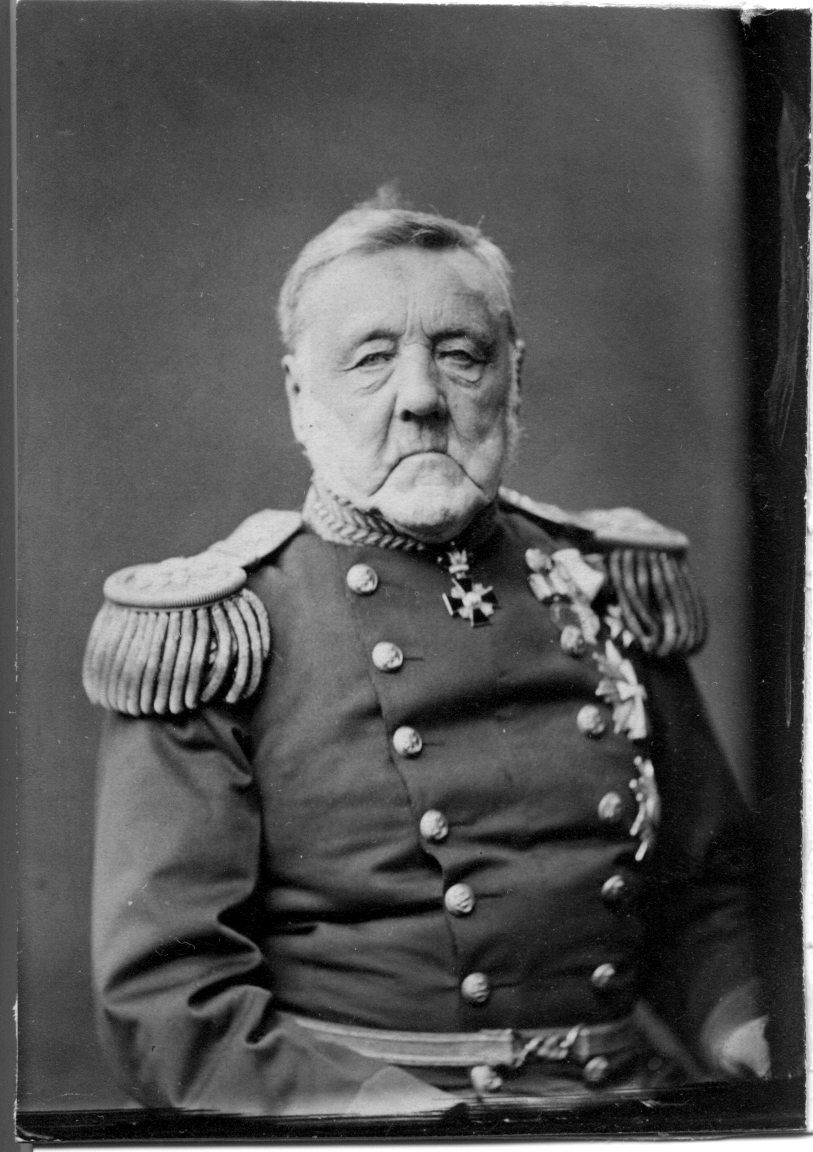 Foto: Steen Andersen Bille, f. 1797 d.1883. Viceadmiral, Marineminister. 9,5 x 6,7 cm. Brystbillede. Gala.