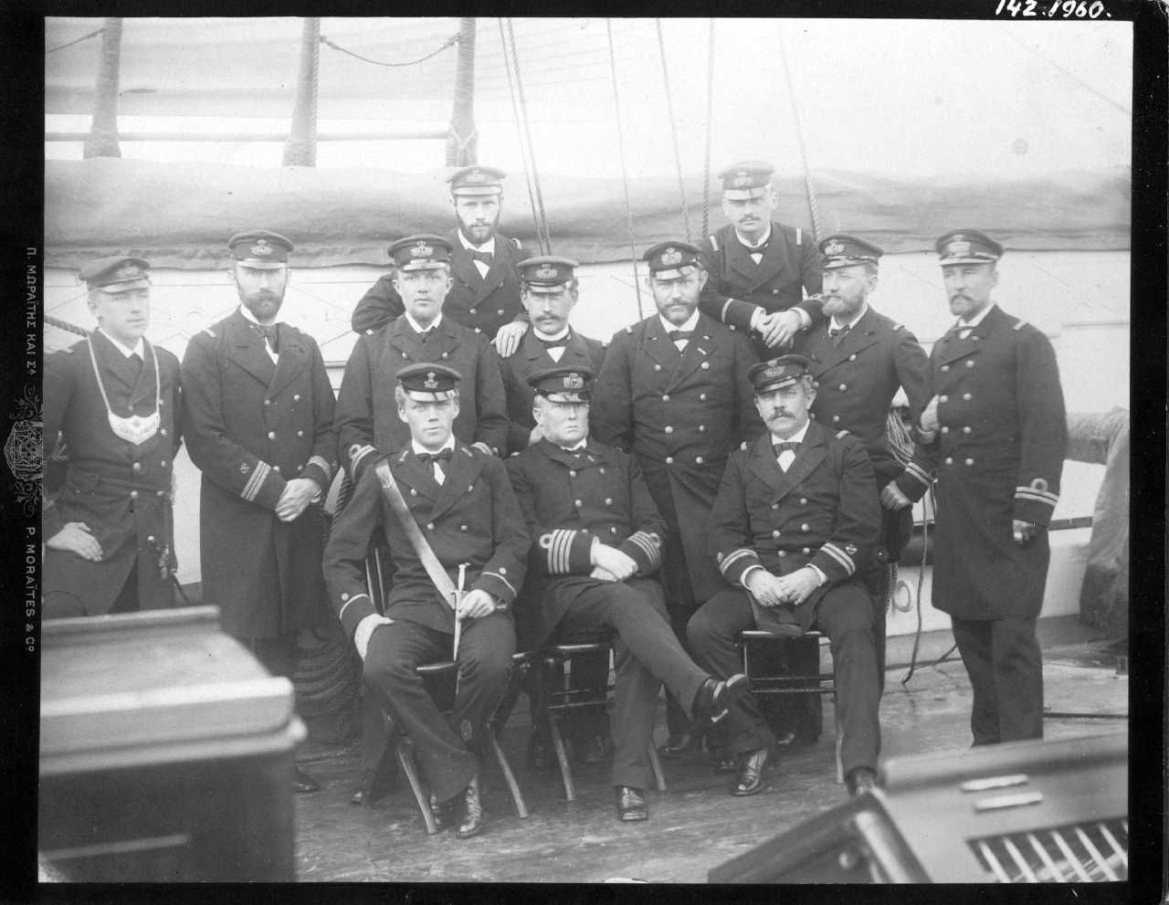 Gruppebillede fra Dagmar under vintertogt til Middelhavet 1887-88