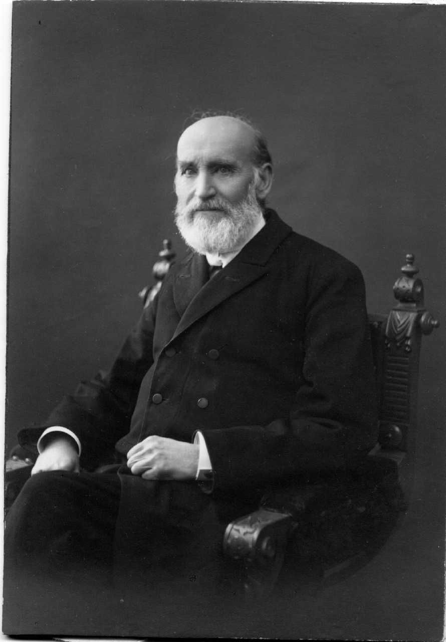 Foto: H.D. Lind, Marinehistoriker. f.1847 d.1927, Siddende, knæstykke. 14,8 x 10,3 cm.