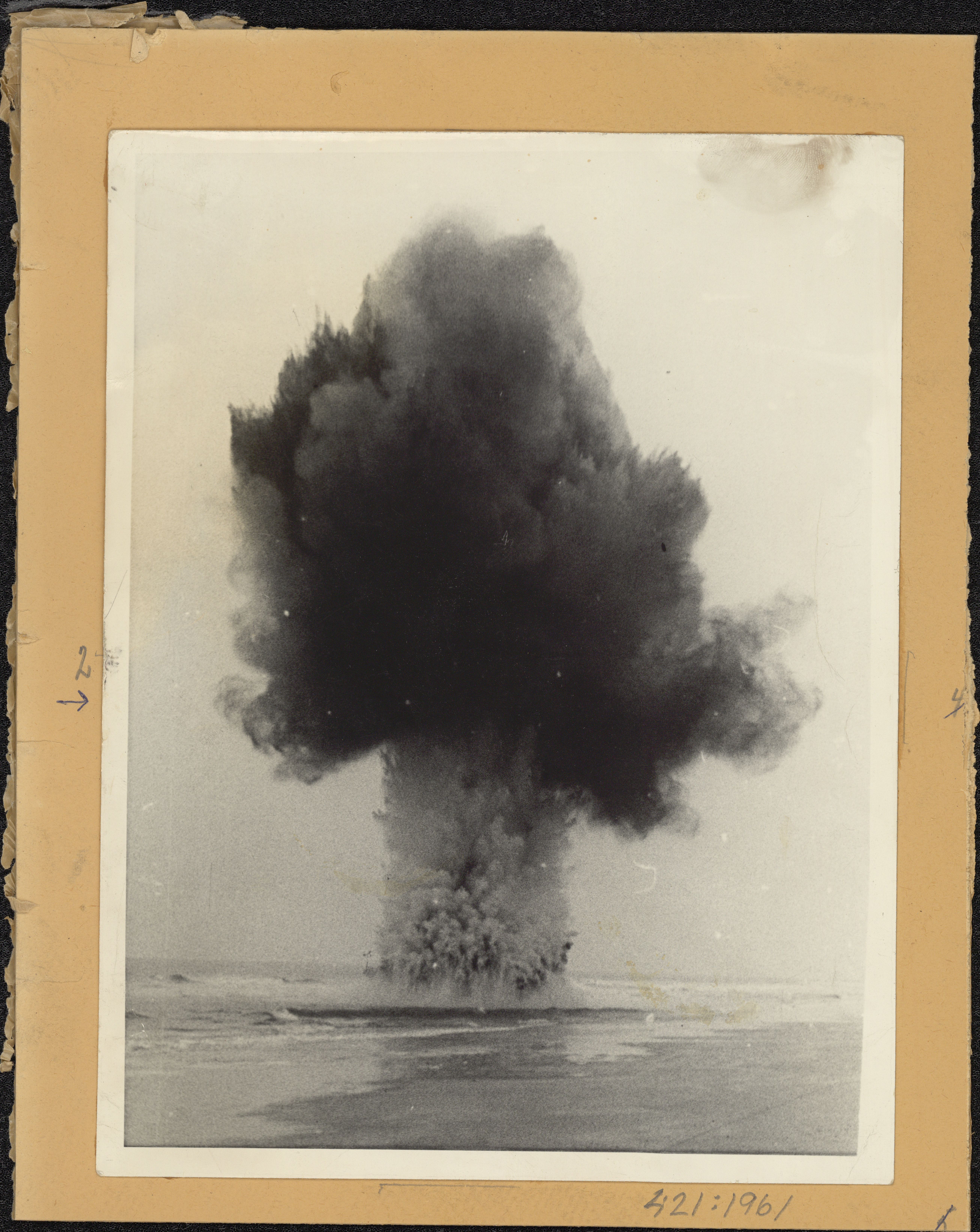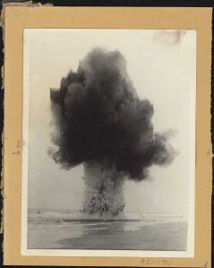 Fotos, 9 stk. vedrørende tjenesten ved M.A.S. Esbjerg i perioden 1945-51. Er forsynet med henvisningsnummer refererende til den for neden angivne billedtext. Fotografierne omfatter 4 stk. visende sprænger af mine, 1 stk. minesøgning på stranden, 1 stk. forberedelse til sprængning af forstrandsmine samt 3 stk. personel, skansevagt og parade optaget på kasernen i Esbjerg. Ramme.