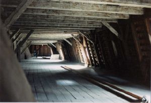 Foto, farve, 4 stk., af interiører Orlogsmuseet, juli 1987. Søkvæsthuset´s Bådsmandsstrædefløj. Parterre, 2. sal og manzard. 15 x 10 cm.