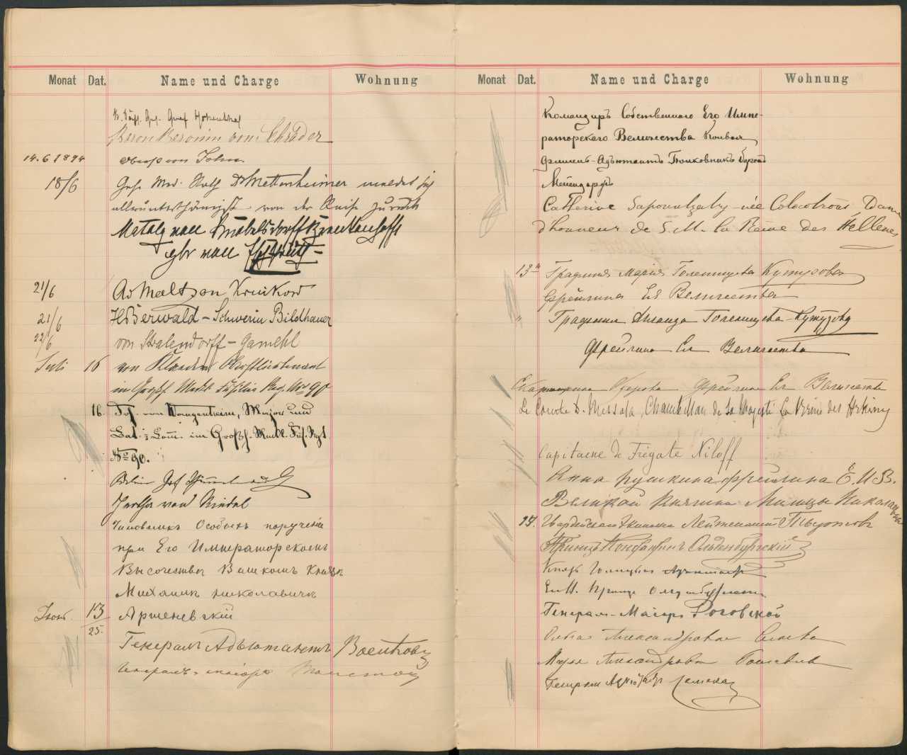 Protokol over audiens/besøg. Formentlig fra Mikhailovitj-storfyrstefamilien. 1893-1899.