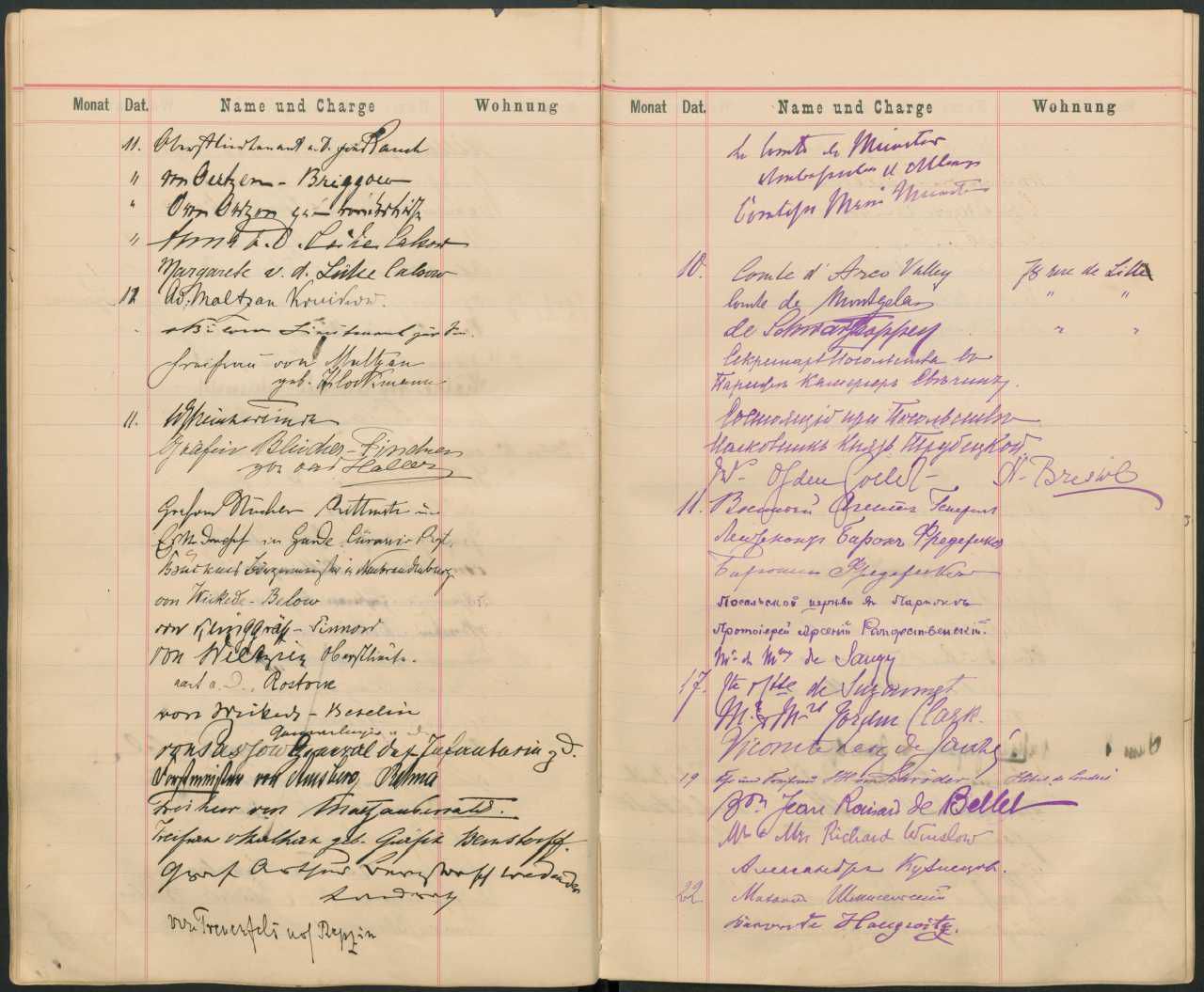 Protokol over audiens/besøg. Formentlig fra Mikhailovitj-storfyrstefamilien. 1893-1899.