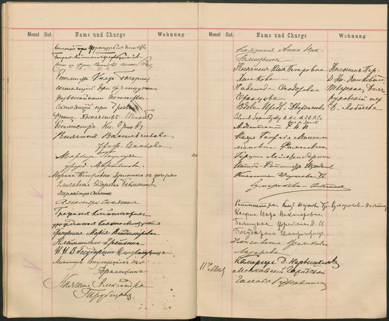Protokol over audiens/besøg. Formentlig fra Mikhailovitj-storfyrstefamilien. 1893-1899.