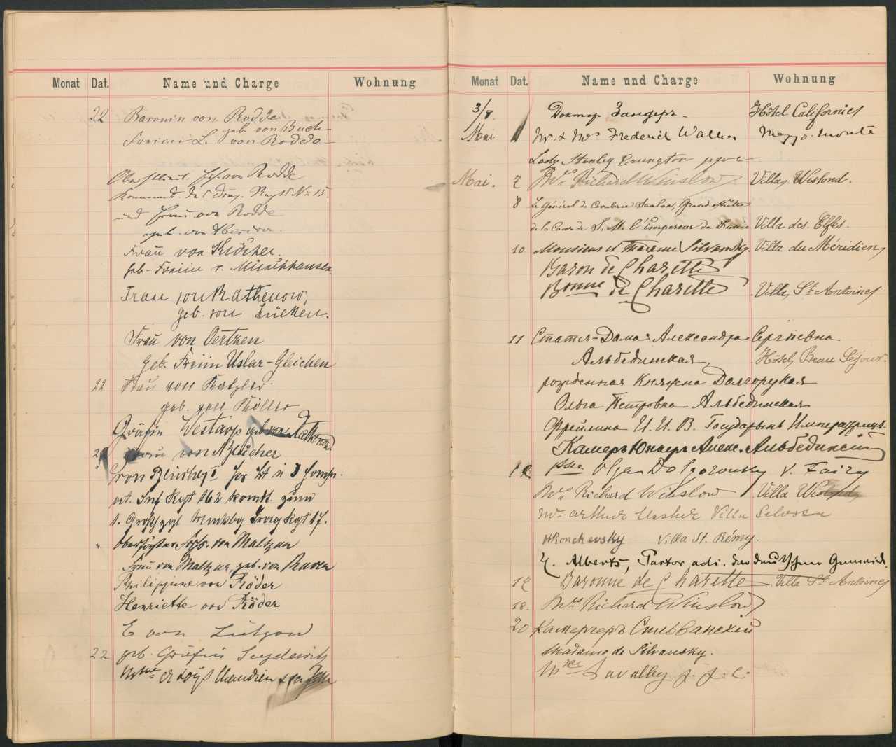 Protokol over audiens/besøg. Formentlig fra Mikhailovitj-storfyrstefamilien. 1893-1899.