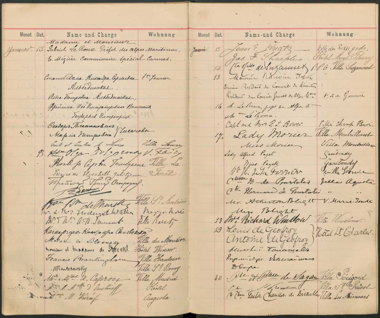 Protokol over audiens/besøg. Formentlig fra Mikhailovitj-storfyrstefamilien. 1893-1899.
