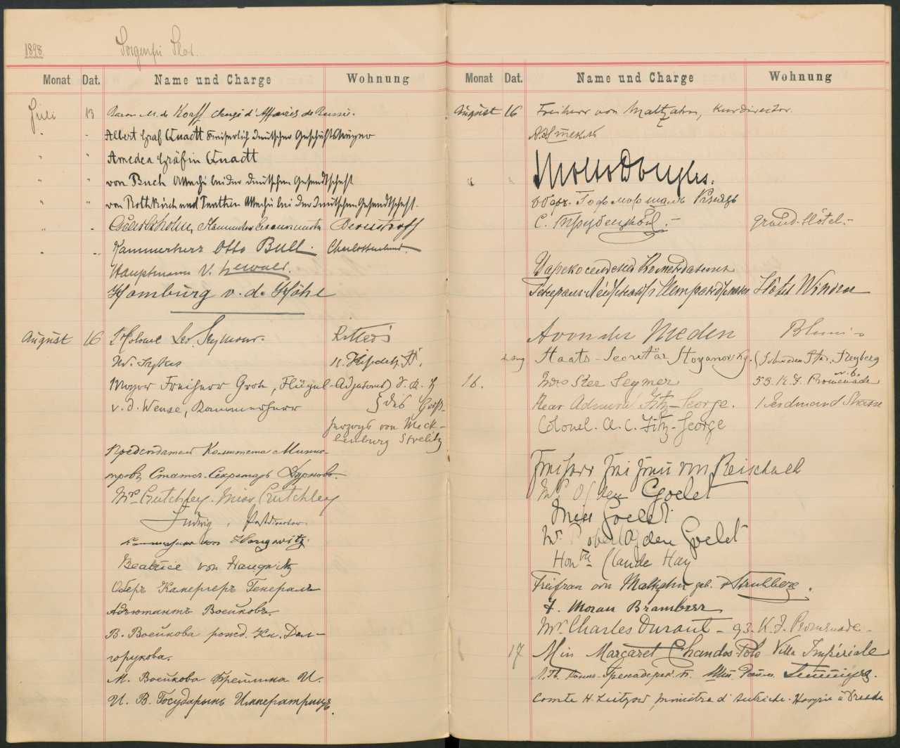 Protokol over audiens/besøg. Formentlig fra Mikhailovitj-storfyrstefamilien. 1893-1899.