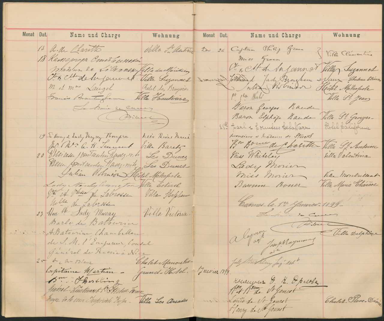 Protokol over audiens/besøg. Formentlig fra Mikhailovitj-storfyrstefamilien. 1893-1899.