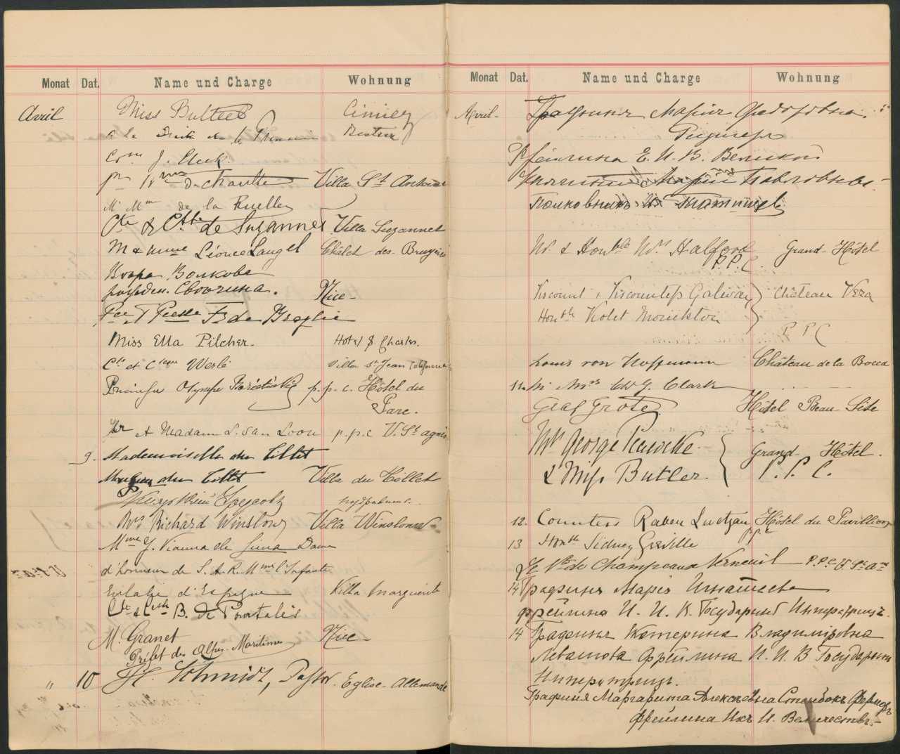 Protokol over audiens/besøg. Formentlig fra Mikhailovitj-storfyrstefamilien. 1893-1899.