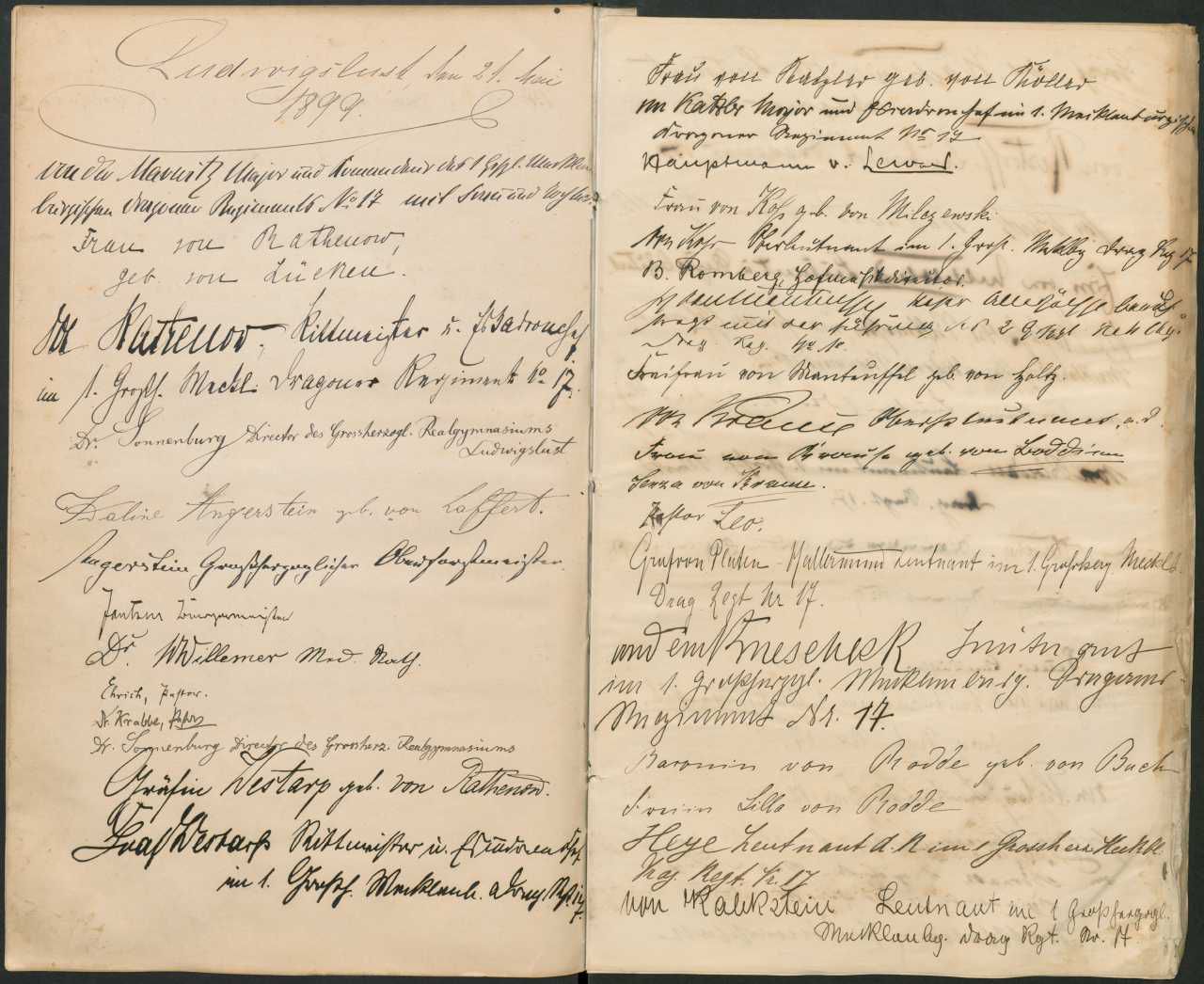 Protokol over audiens/besøg. Formentlig fra Mikhailovitj-storfyrstefamilien. 1893-1899.