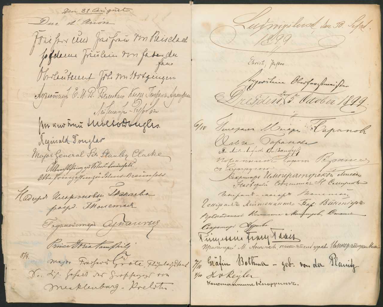 Protokol over audiens/besøg. Formentlig fra Mikhailovitj-storfyrstefamilien. 1893-1899.