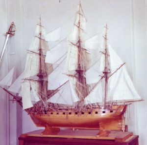 Foto, farve, efter model: Fregatten "Najaden", søsat 1811, set mod bagbord.